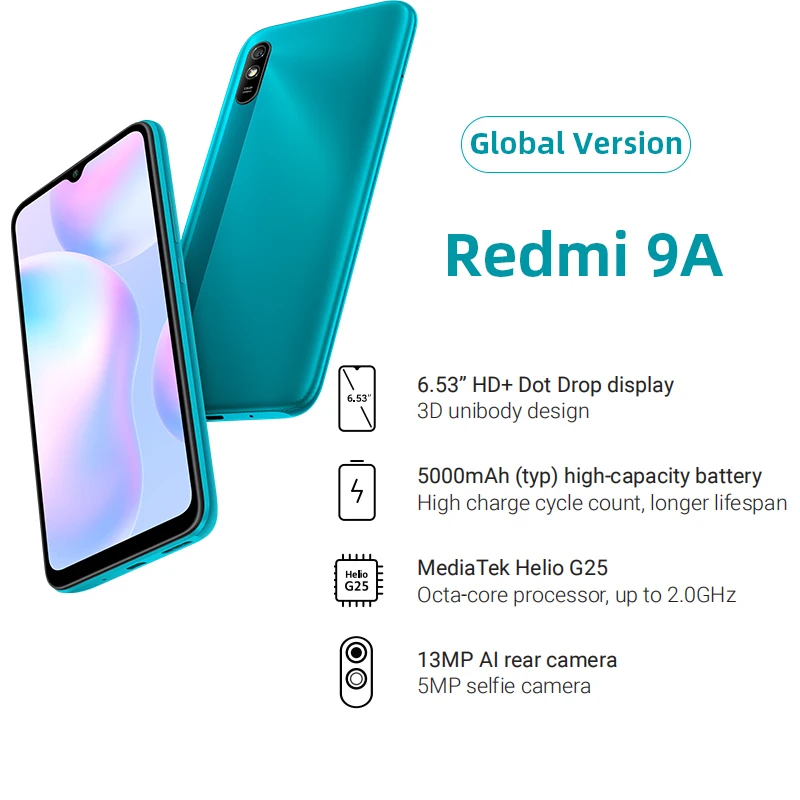 Product Name: Globalna Wersja Xiaomi Redmi 9A 5000mAh Bateria Telefon Komórkowy 2GB 32GB MediaTek Helio G25 6.53 "wyświetlacz HD 13MP AI Tylna Kamera
