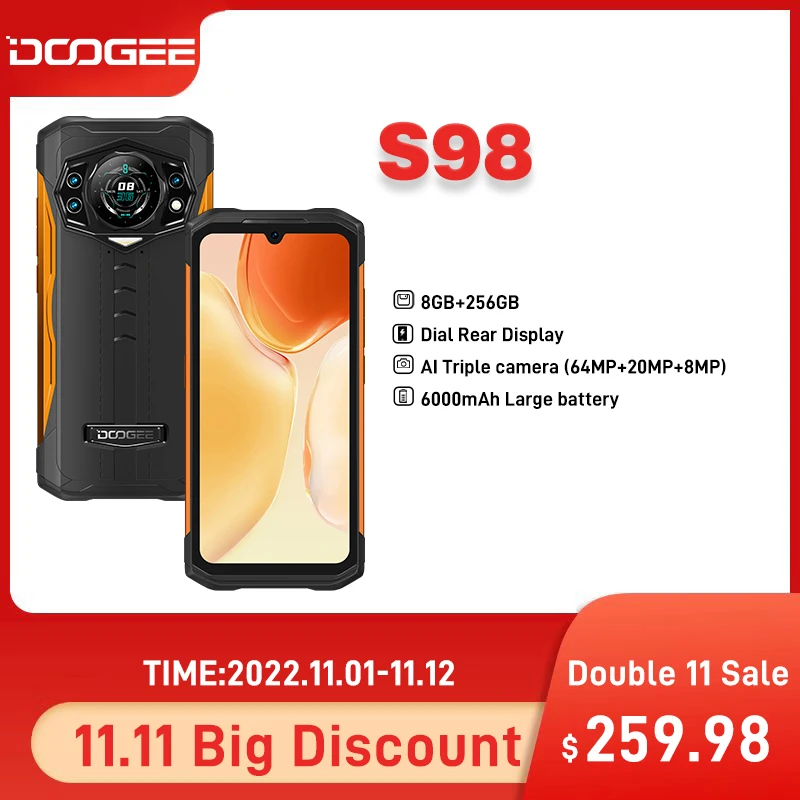 Product Name: Światowa Premiera DOOGEE S98 Wytrzymały Telefon 6.3 "wyświetlacz LCD FHD Tarcza Tylna G96 Octa Core 8 + 256GB 64MP Aparat SmartPhone 6000mAh Telefon